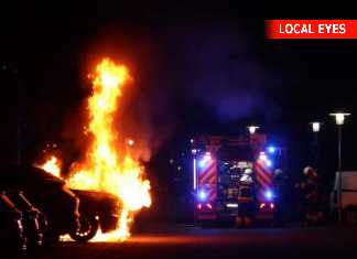 En mand blev anholdt og iført dna dragt og kørt væk af politiet. Branden var hurtig slukket og politiet teknikere vil undersøge brandårsagen og huset er lukket for adgang af politiet.