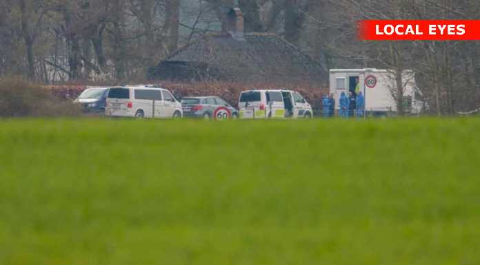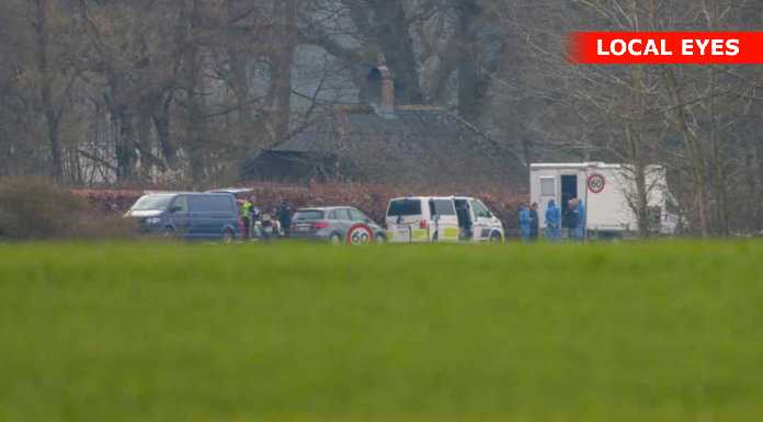 Billeder og video er fra Kirkerup/Fladholtevej den 16. april 2023 – herunder helikopter ved Esholtevej/Fladholtevej og undersøgt hus på Fladholtevej.