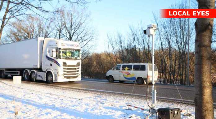 HELSINGØR: Mandag eftermiddag står sund og bælts kamera på Kongevejen i Helsingør og holder øje med lastbilerne.