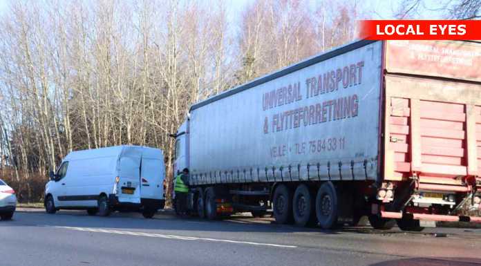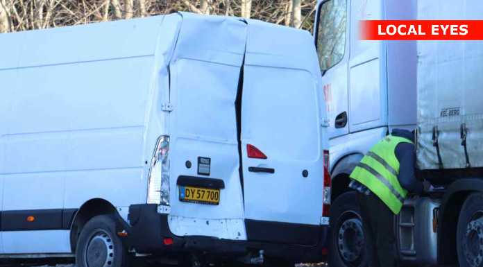 Det viste sig at være et uheld, hvor en lastbil var kørt op i bagenden på en kassevogn.