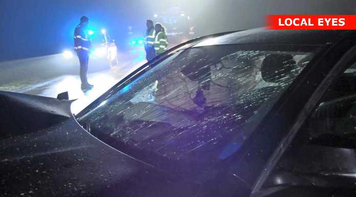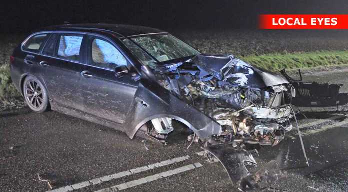Af endnu ukendte årsager mistede føreren af BMW'en kontrollen over bilen som kom ud i rabatten og her påkørte et kraftigt træ som bla. rev højre forhjul af og sendte det ca. 30-40 meter ud på en mark.