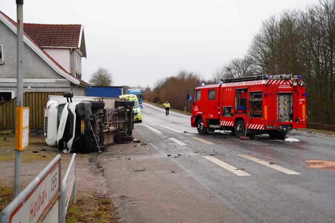 Snertinge : Rute 155 Kalundborgvej mellem Snertinge og Bregninge var mandag eftermiddag helt spærret i begge retninger. Her stødte en lastbil og en varebil frontalt sammen i krydset ved Favrbovej. Hems har været på stedet og er lettet igen. Vejen ville være spærret i et godt stykke tid endnu da man afventer en bilinspektør. politiet oplyser at en person er fløjet til riget svært tilskadekomne, men har senere meldt ud at manden er uden for livsfare. Det giver også en udfordring mere da en af biler har ramt et el-skab. En del beboere i området er uden strøm men el selskabet er på sagen også
