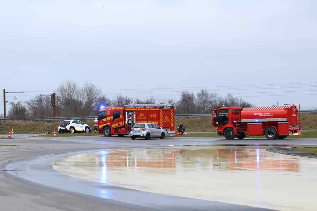 Ulykken var sket på et køreteknisk anlæg. Føreren var hurtigt ude af bilen og blev tilset af