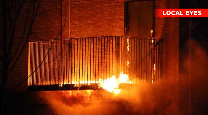 ILD I BALKON OG DØR TIL LEJLIGHED I BALLERUP ONSDAG AFTEN