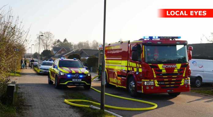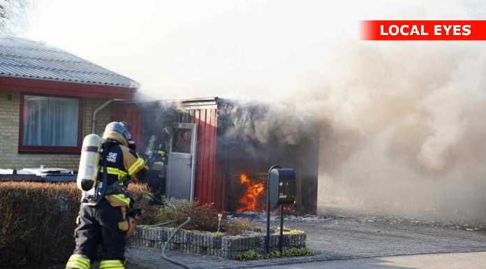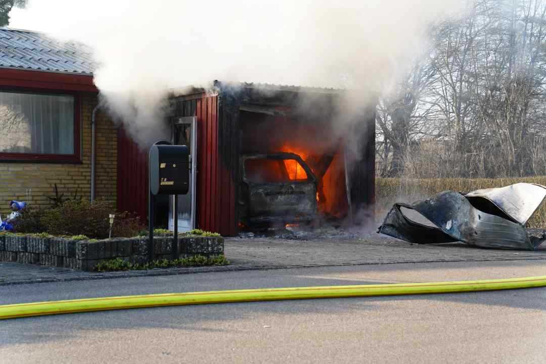 Fjenneslev: En voldsom brand i en garage hvor en bil er udbrændt spreder sig til hus. Heldigvis får Slagelse brand og redning station Sorø hurtigt kontrol over flammerne så det kun er en lille del af gavlen på huset flammerne får fat i. Garage og bil er udbrændt.