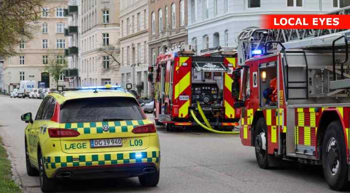 -HBeredskab mødt på #Strandboulevarden efter melding om ild i lejlighed. Ved ankomst konstateres ild i køkken og røgspredning til bagtrappe. Slukningsarbejdet er i gang. Opdateres.