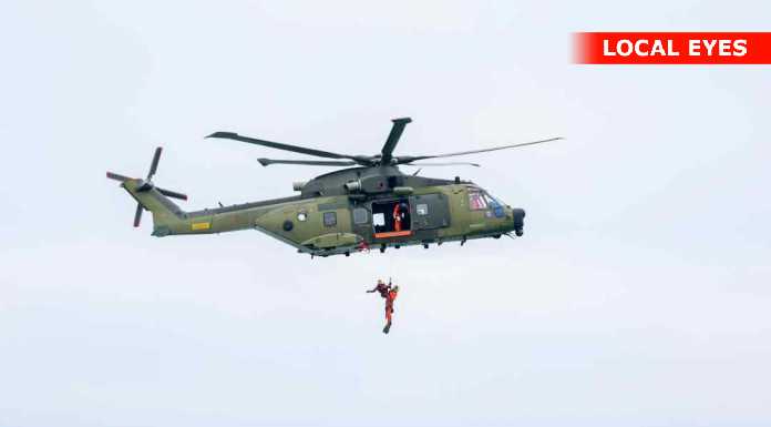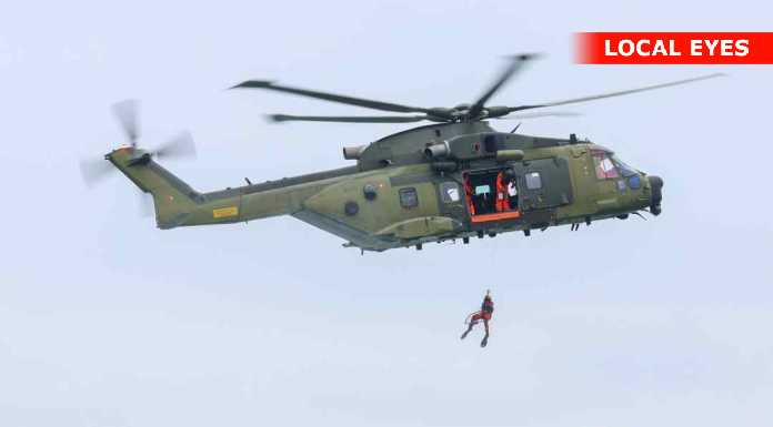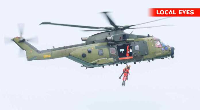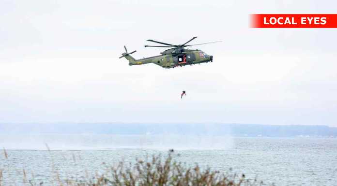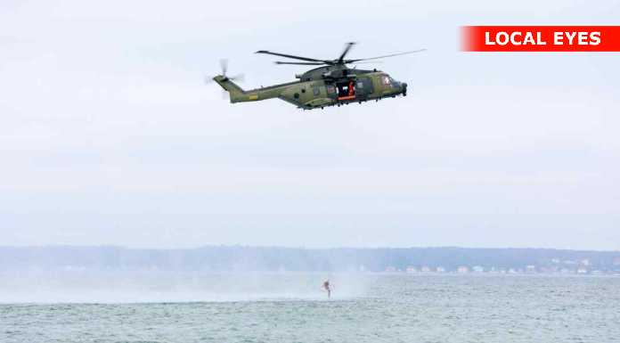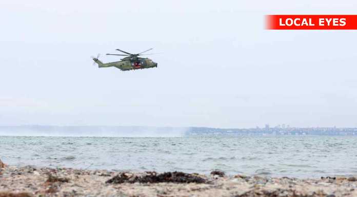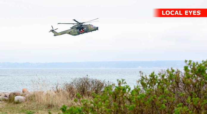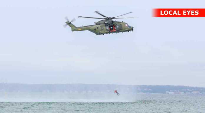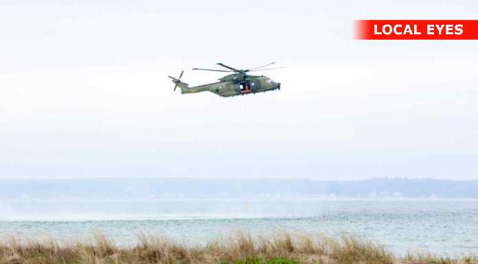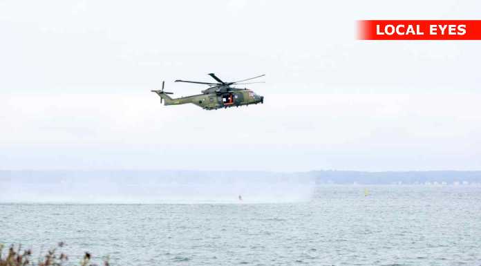 HELSINGØR: Flyvevåbnets redningshelikopter valgte lørdag eftermiddag at afholde træning blot få hundrede meter ude i vandet foran Marienlyst Strandhotel.