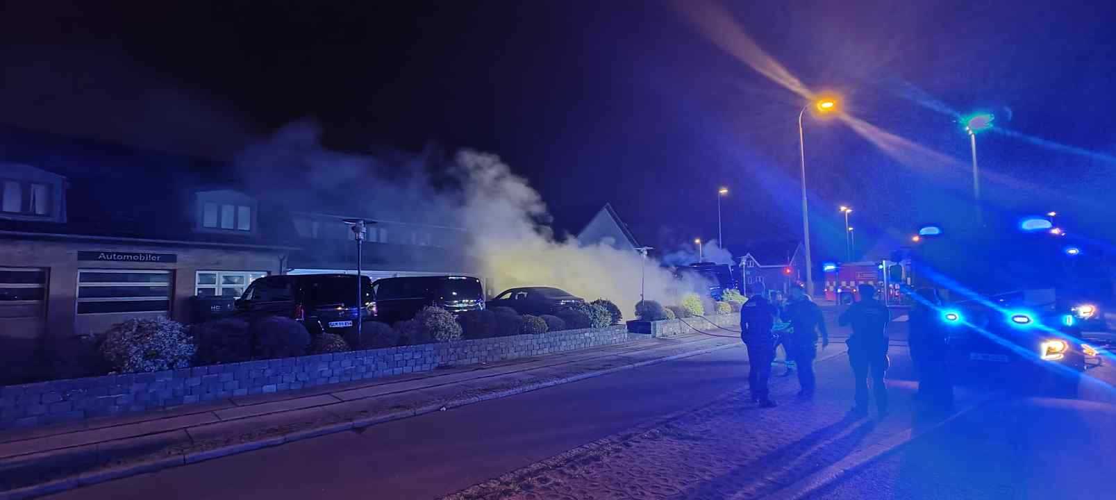 Der er to biler der er brudt i brand hos en autoforhandler/ udlejning af V.I.P mini busser m.m. årsagen til branden er ukendt, nen det forlyder sig at den kunne være påsat.