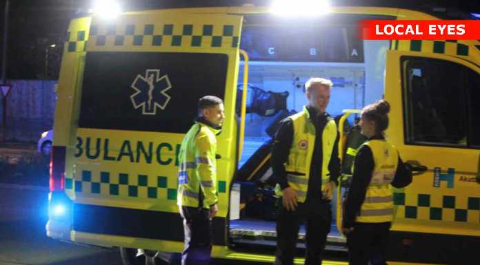 Ambulancen og brandstation Hvidovre er tilstede samme men politiet.