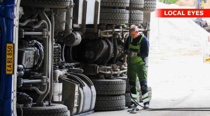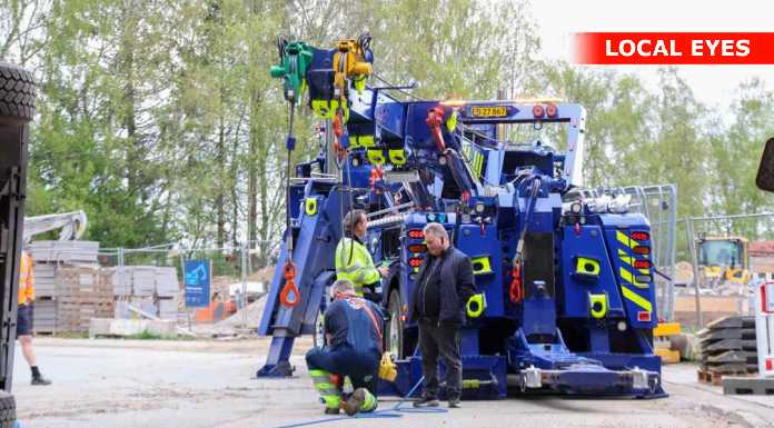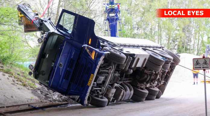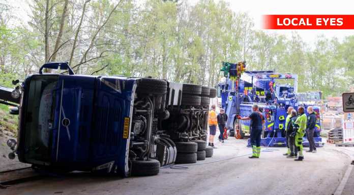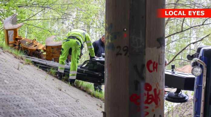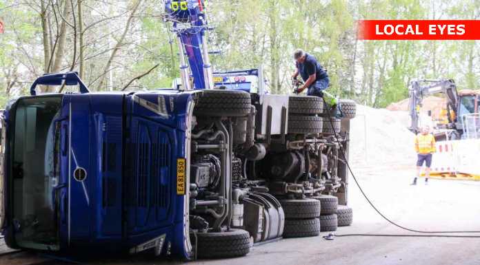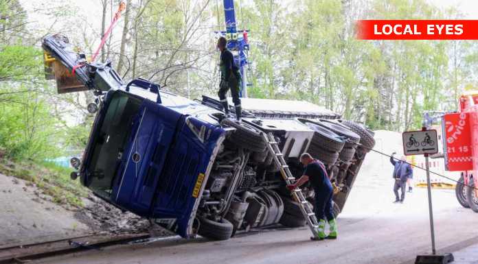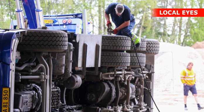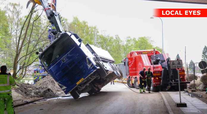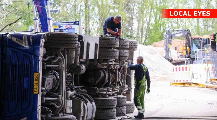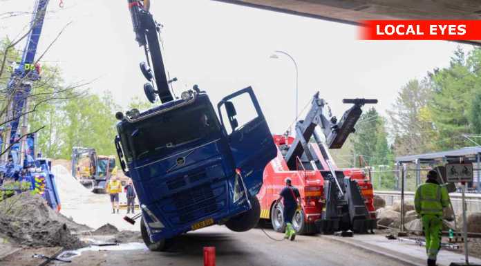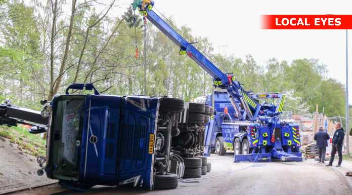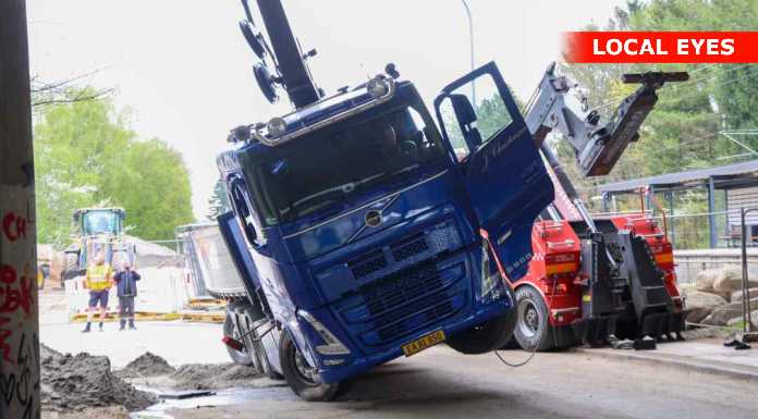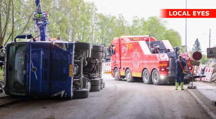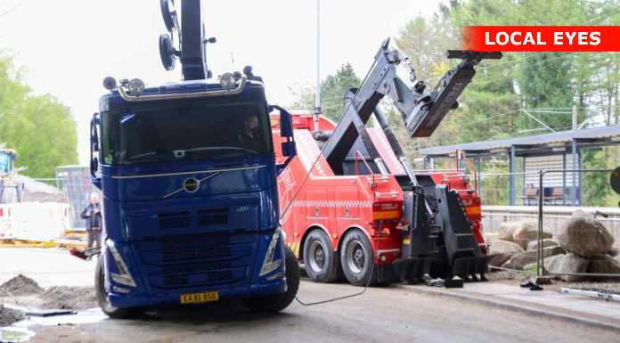 TJ Bjærgning er på stedet for at på lastbilen op at stå igen.