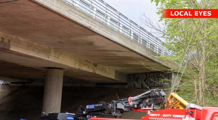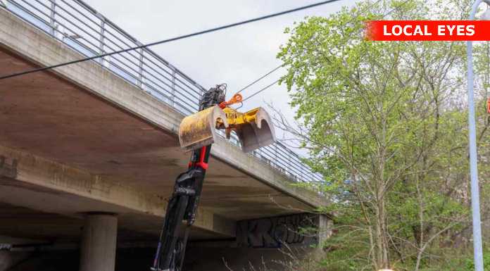 Vejen under broen var spærret under arbejdet på uheldsstedet.