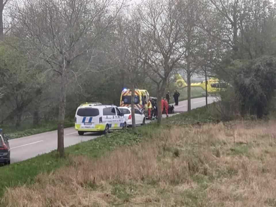 En person er kommet alvorligt til skade på Vigvej ved Nørre Vedby på Falster. som man kan se på billederne er bilen voldsomt smadret og der er dele på marken fra bilen . Vejen er spærret i begge retninger imens der ryddes op. en person er fløjet til riget.
