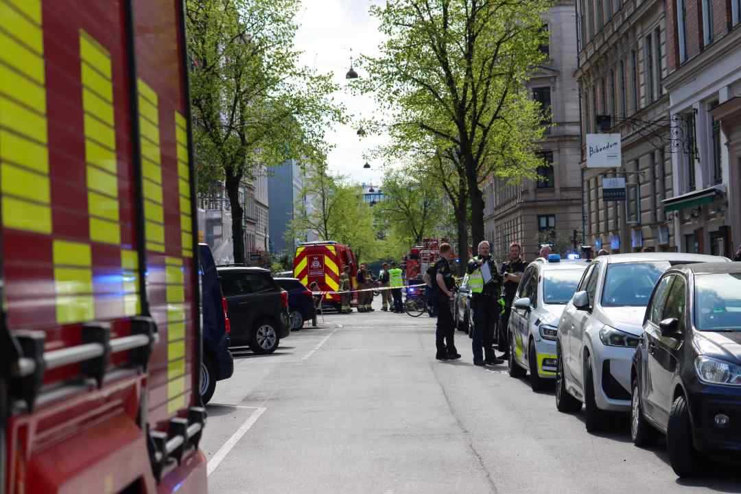 Brandvæsen og politi er massivt til stede ved en lejlighed på Nansensgade, midt i København.
