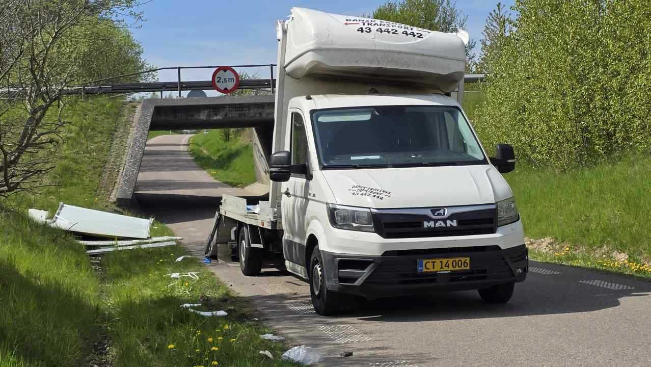 Alle skiltene om det automatiske advarselsanlæg er dækket behøringt til, så man kan umuligt tage fejl, og desuden er der henover 3-400 meter skiltet 3 gange med advarsel om den lave bro.