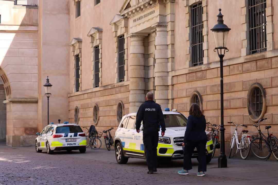 Billeder og video er fra foran Dommervagten i Slutterigade midt i København torsdag.