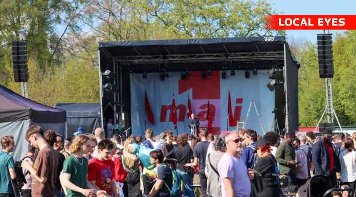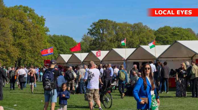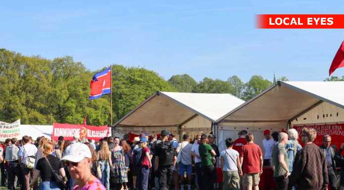 Agency 1. maj i Fælledparken torsdag 1. maj 2025 Share on Facebook Tweet on Twitter KØBENHAVN: 1. maj i Fælledparken blev afholdt i høj solskin, og 19 graders varme, torsdag eftermiddag. Der var mange mennesker forsamlet i parken.Til stede var lige fra store partier til Dansk-nordkoreansk venskabsforening./local eyes/Torsdag 1. maj 2025 / 104534