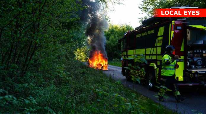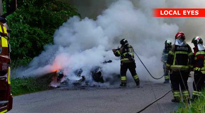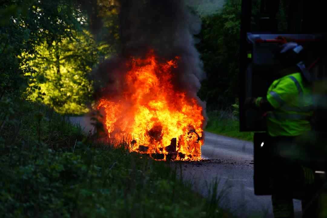 Sorø: Mandag aften rykkede Slagelsebrand og redning station Sorø ud til en melding om ild i bil på Topshøjvej i Sorø. Da brandvæsnet ankommer er fronten på bilen helt overtændt og flammerne har også fået fat i kabinen. Først var man lidt bekymret for om der var nogen i bilen så man smadrede ruderne i bilen men heldigvis var dette ikke tilfældet. Man fik slået de voldsomme flammerne ned med en Htèr. Bilen er så godt som udbrændt der er ikke meget tilbage. Politiet kom forbi for lige at snakke med ejer af bilen. Vejen var spærret i begge retninger imens slukningen foregik. Branden i bilen var opstået under kørsel