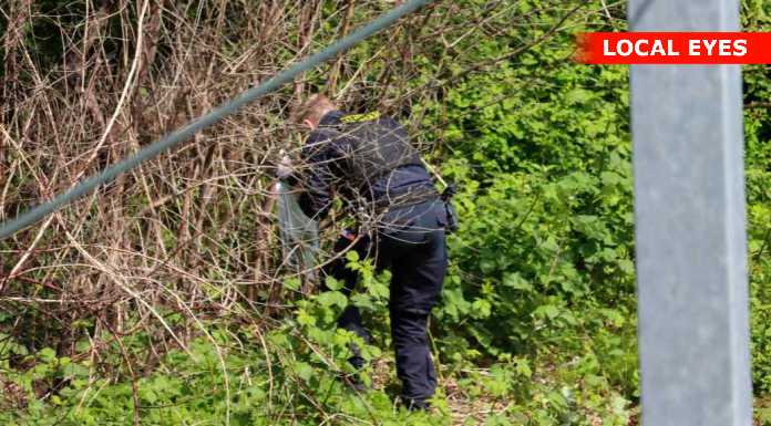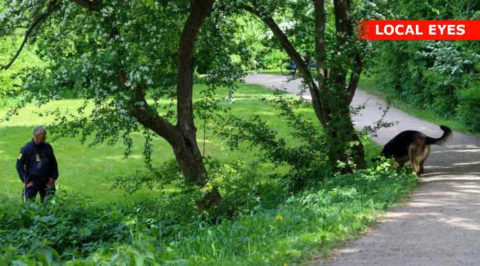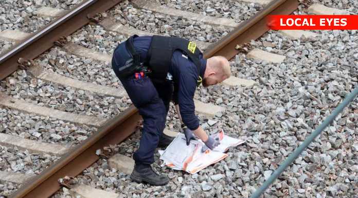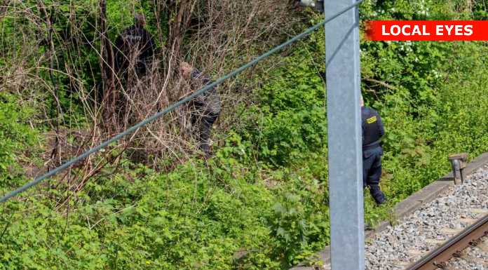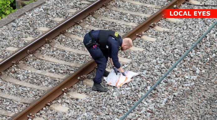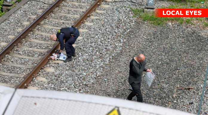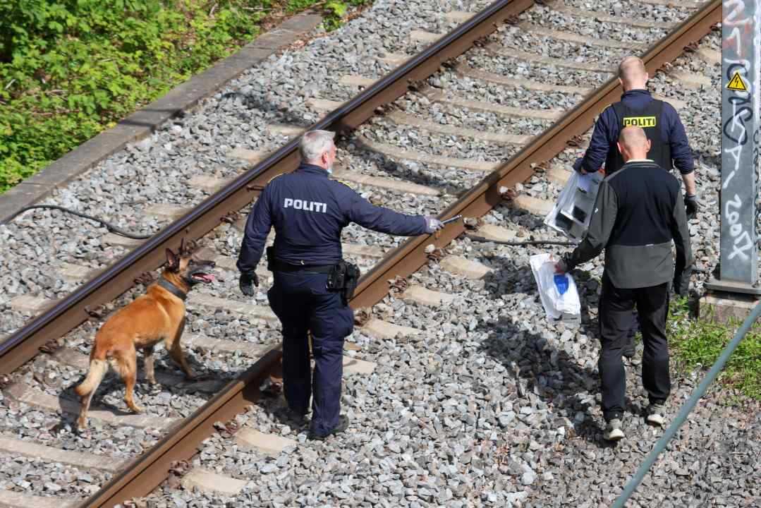 Politiet er lørdag formiddag talstærkt til stede med hunde, og der søges samt indsamles spor fra banelegemet/S-togssporene for Linje F, samt fra den del af Grøndalsparken, der er lige ved siden af sporene.