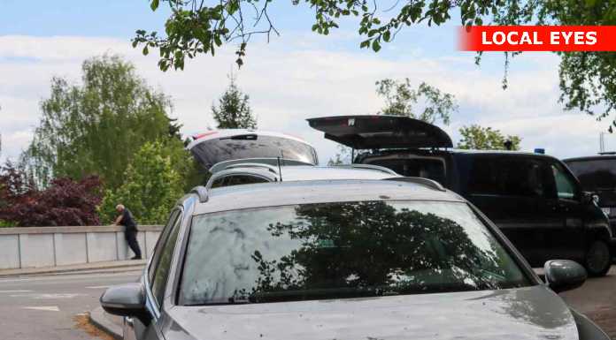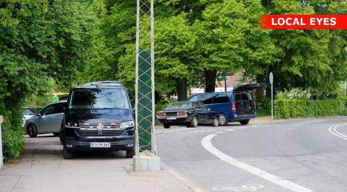 Der er mindst 4 mindre og større politikøretøjer fremme.
