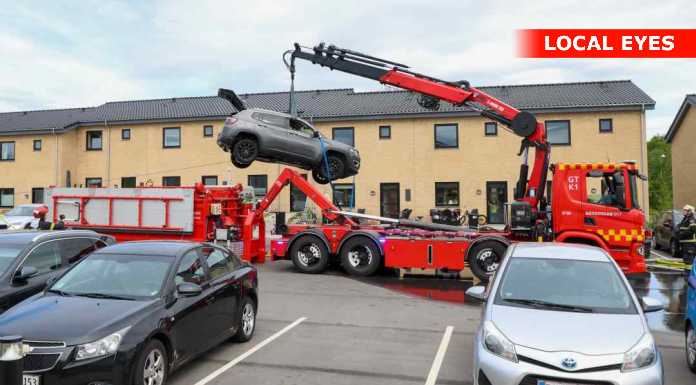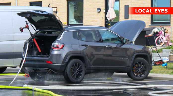 Ved ankomsten viste det sig at være en hybridbil, og derfor blev p-pladsen spærret af, og beboere blev bedt om at gå inden for.