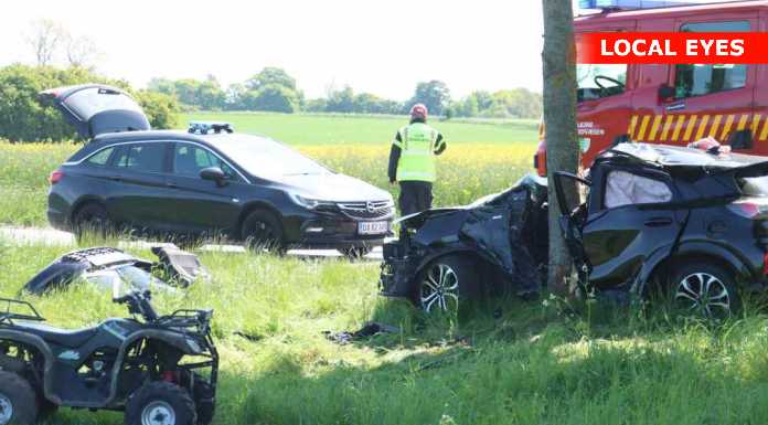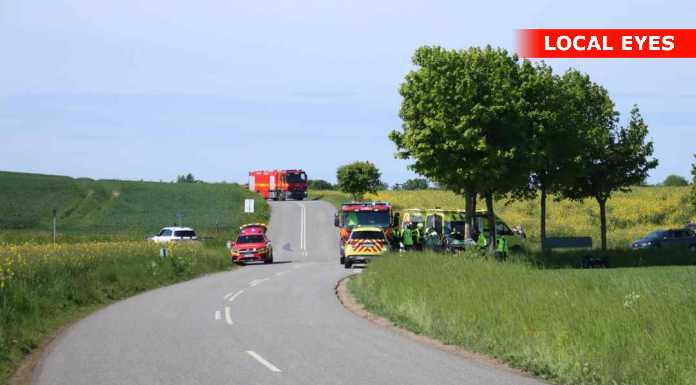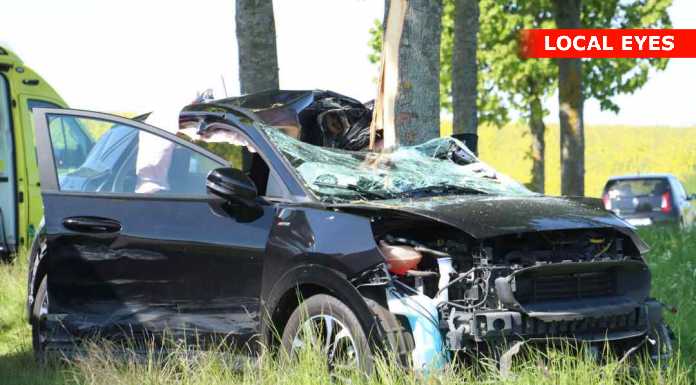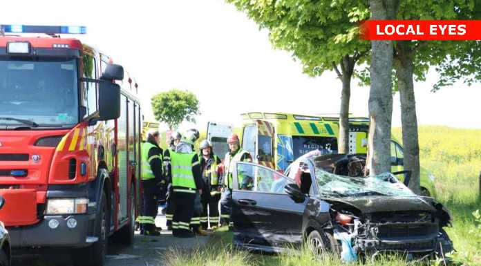 Voldsomt uheld med en personbil som er kørt ind i et træ på Bispegårdsvej i Lejre.