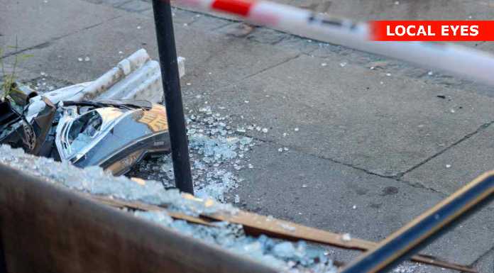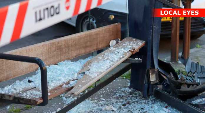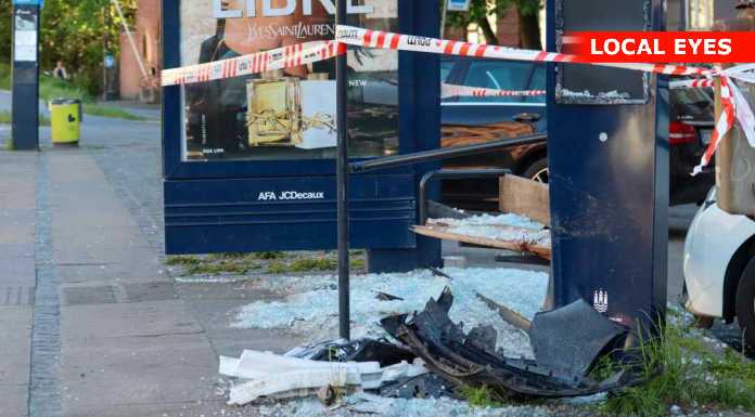 Busskuret ved krydset Ågade / Falkoner Alle / Jagtvej henstår mandag aften smadret, og med vragdele, efter et alvorligt færdselsuheld sidst på aftenen i går.