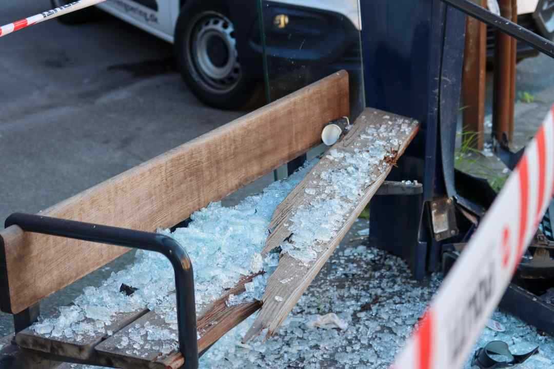 Busskuret ved krydset Ågade / Falkoner Alle / Jagtvej henstår mandag aften smadret, og med vragdele, efter et alvorligt færdselsuheld sidst på aftenen i går.