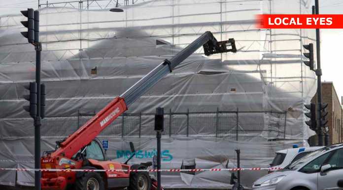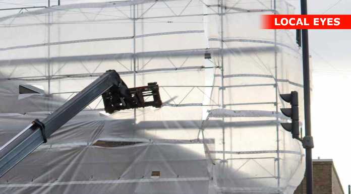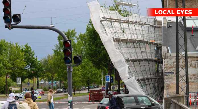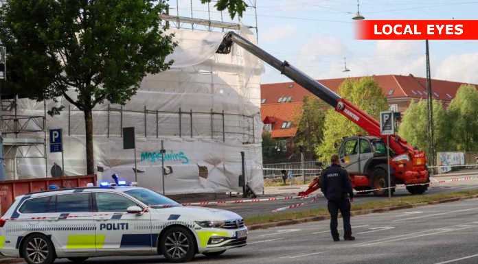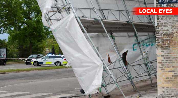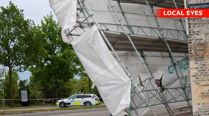 Et stillads er i kraftig nedstyrtningsfare ved krydset Enghavevej / Vigerslev Alle. Politiet har afspærret Enghavevej i udadgående retning. Strøm er øjensynligt gået, pga. at stilladset hænger i kabler.