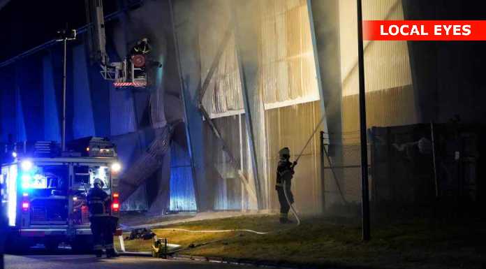De skriver endvidere, at branden blev anmeldt klokken 21.46 og at brandvæsnet ankom til den brændende bygning cirka ti minutter herefter.