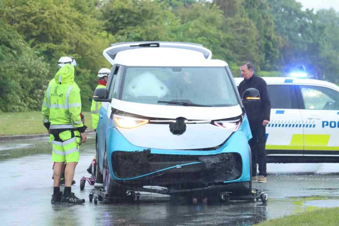 Det er uvist om der skete personskade, men ingen personer sad fastklemt som meldingen ellers lød på.