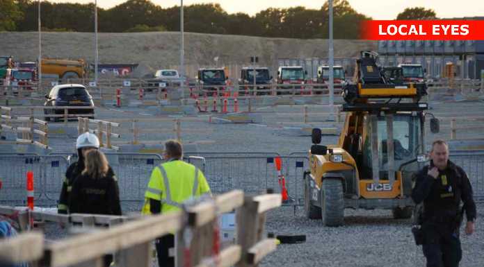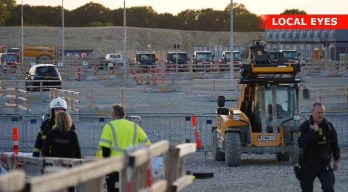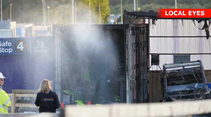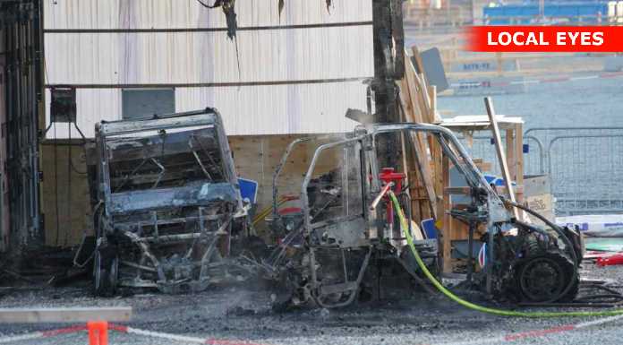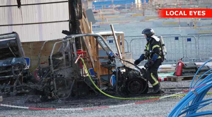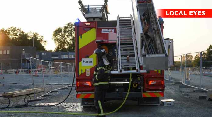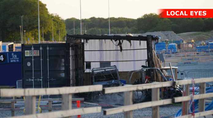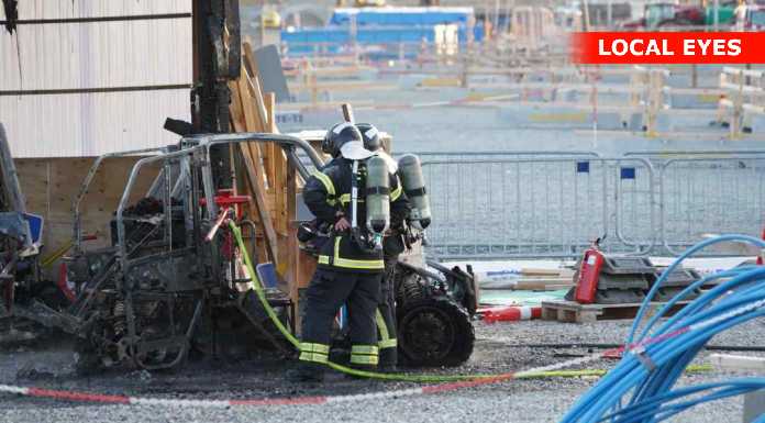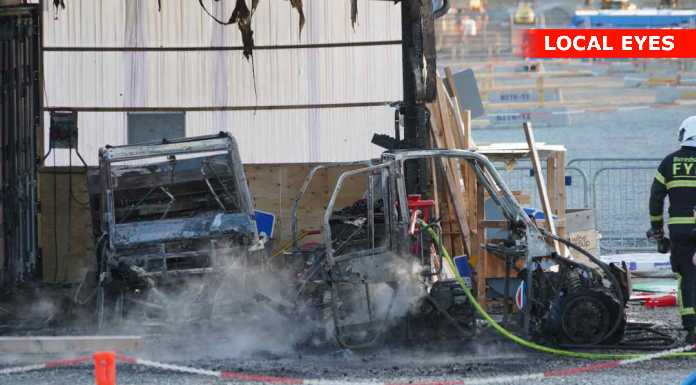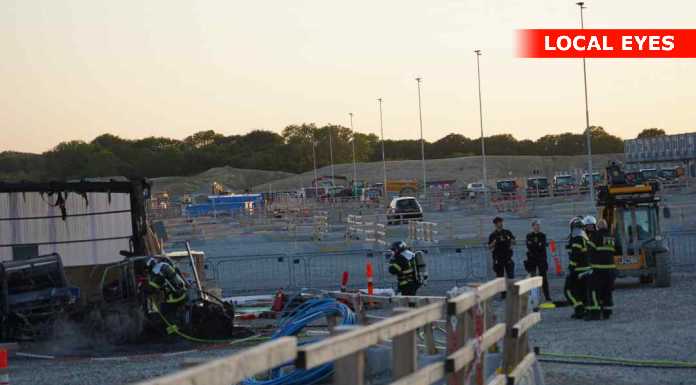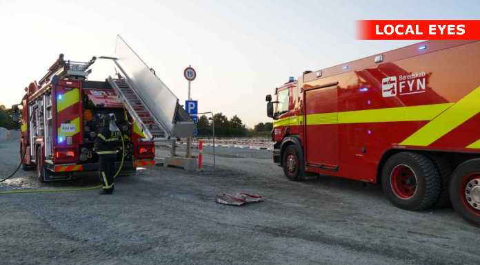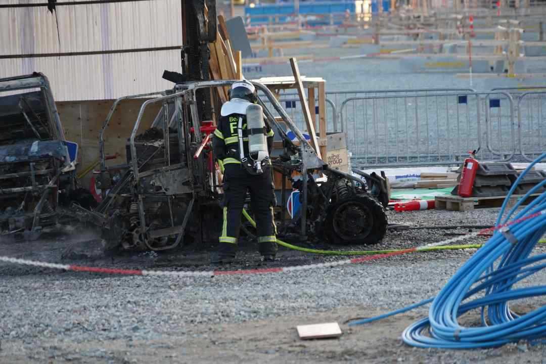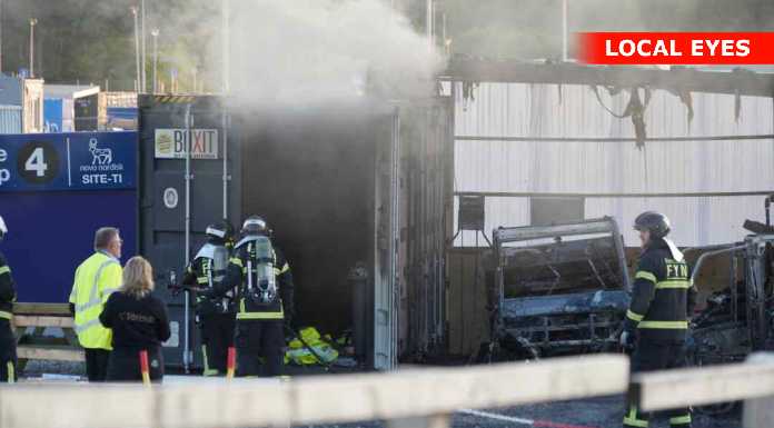 I Odense er der brand på Novo Nordisk byggeplads her onsdag aften. Branden opstod formentlig ved at 2 ATV var sat til opladning af vagterne og kort tid efter brænder de.
