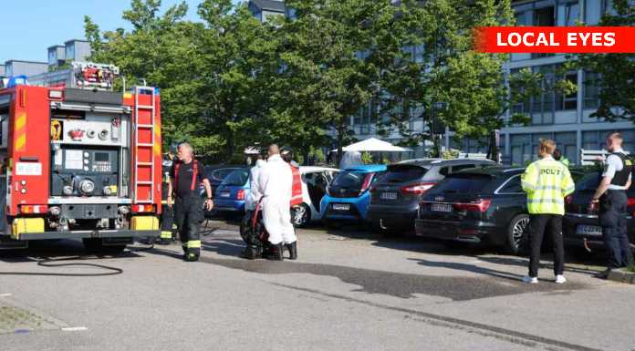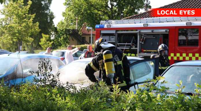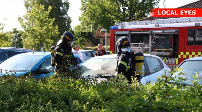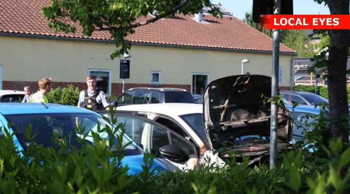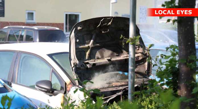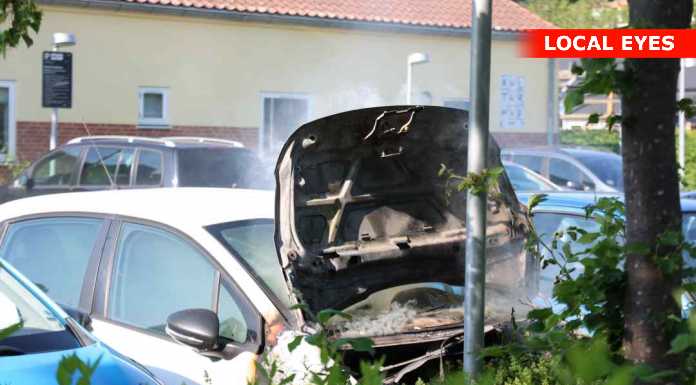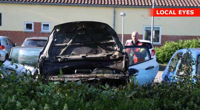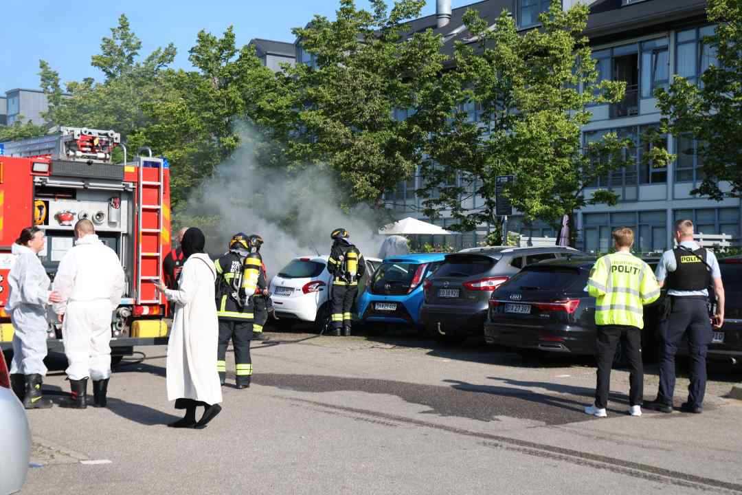 HELSINGØR: Fredag formiddag kort efter klokken 08, indløb en melding via 1-1-2 om at en bil stod og brændte på p- pladsen på Hovmarken, på vapnagård i Helsingør.