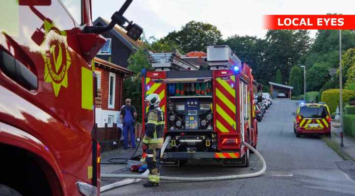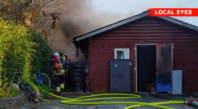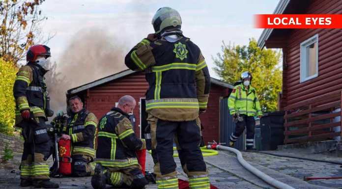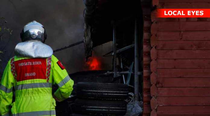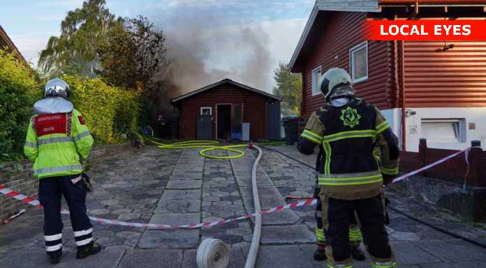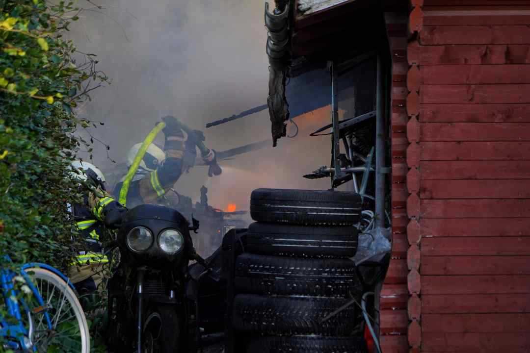 Branden i selve skuret blev forholdsvis hurtigt slukket, men branden havde spredt sig til udhænget og derfra fået fat i en bunke affald bag skuret. Flammerne stod højt og en kraftig sort røg drev ud over området.