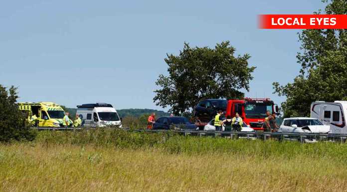 Slagelse : Vestmotorvejen imellem Slagelse 38 og Slagelse 39 er der et uheld flere biler kørt sammen. Politi og to ambulancer er på stedet. Det er en sort dag på Vestmotorvejen da den har været ramt af uheld på stribe. Det er det fjerde uheld på strækningen fra Ringsted til Slagelse. Lige nu er køen 5-6 kilometer fra Sorø imod Slagelse. Der har som sådan været kø på strækningen i flere timer nu. Så man må væbne sig med tilmodighed i dag på Vestmotorvejen