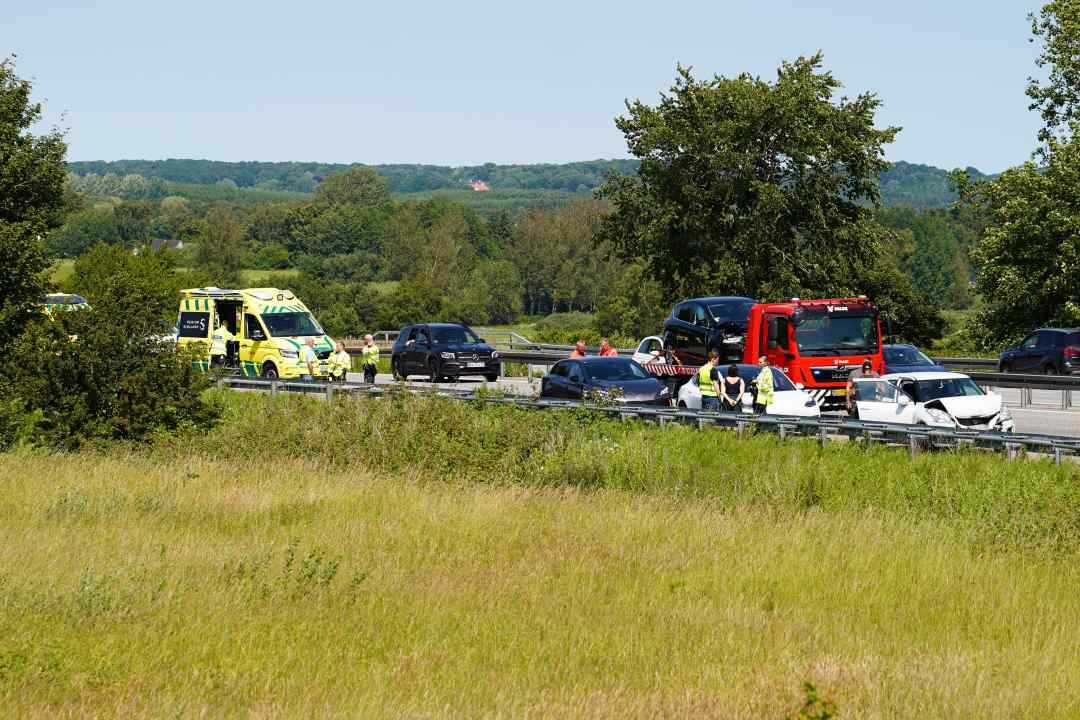 Slagelse : Vestmotorvejen imellem Slagelse 38 og Slagelse 39 er der et uheld flere biler kørt sammen. Politi og to ambulancer er på stedet. Det er en sort dag på Vestmotorvejen da den har været ramt af uheld på stribe. Det er det fjerde uheld på strækningen fra Ringsted til Slagelse. Lige nu er køen 5-6 kilometer fra Sorø imod Slagelse. Der har som sådan været kø på strækningen i flere timer nu. Så man må væbne sig med tilmodighed i dag på Vestmotorvejen