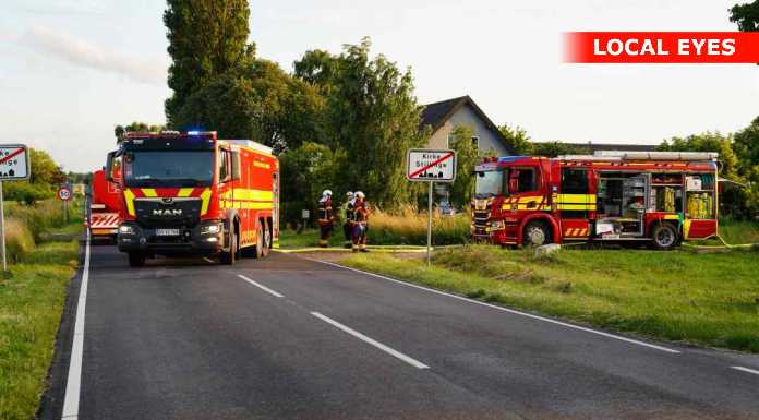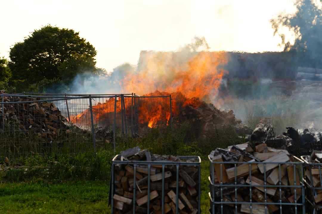 Slagelse: Mandag aften Rykkede Slagelse brand og redning station Slagelse og Korsør ud til en melding om brand i 200 til 300 rummeter brænde. alarmen indløb klokken 19:50. på adressen, hvor der normalt foregår salg af netop brænde havde Gnister fra en grill hygge fået fat i noget græs som så bredte sig til en stor stak brænde. Vinden gjorde det ikke nemt at få bugt med flammerne men en time efter alarmen havde man kontrol over ilden og fik slået den helt ned. -ingen personer er kommet noget til ved branden.