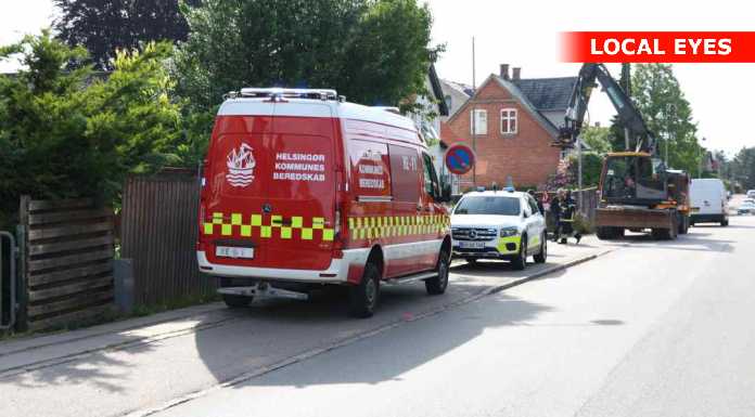 HELSINGØR: Helsingør Kommunes Beredskab er til stede på Ørebakken i Helsingør, hvor man er i gang med at lave fjernvarme, i den forbindelse har man uheldigvis ramt en gasledning.