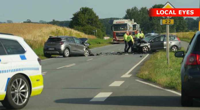To personer er blevet kørt til hospitalet efter et alvorligt frontalt sammenstød på rute 22 nord for Slagelse. Ulykken skete nær Havrebjerg og involverede to biler, der kolliderede med omkring 80 km/t.
