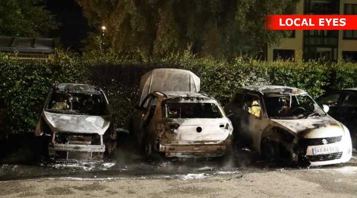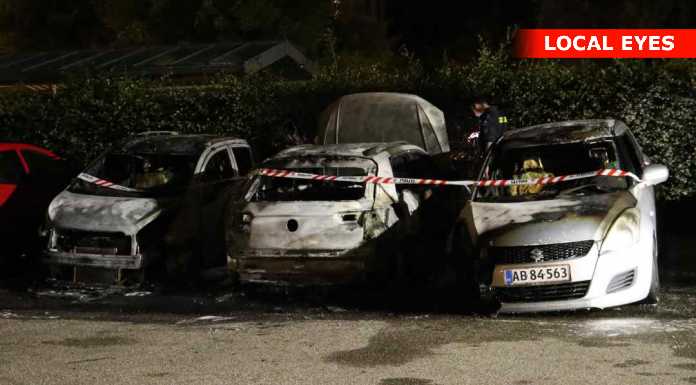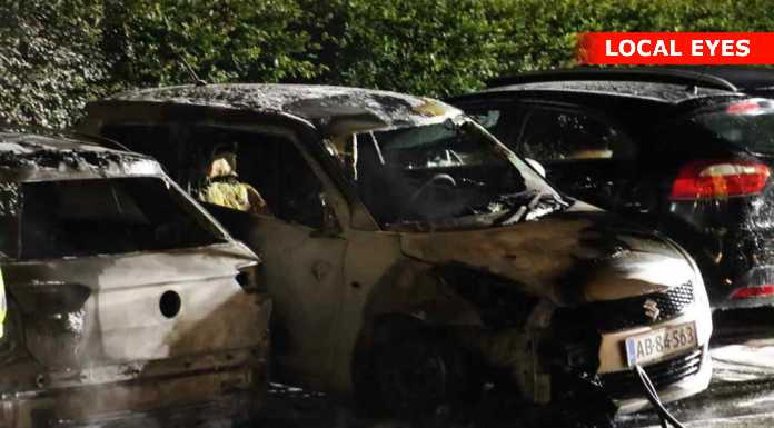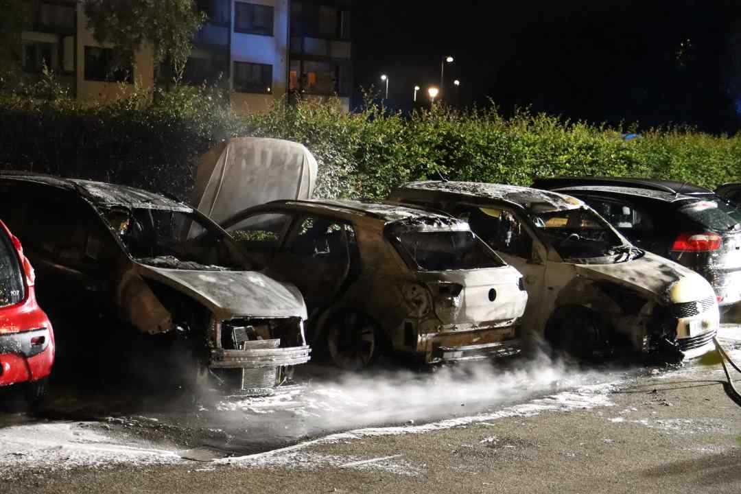 Da man ankom til stedet var der brand i tre biler, og alle tre biler udbrændte.