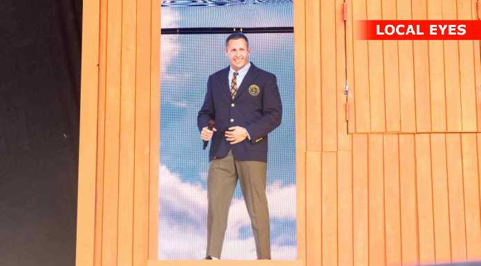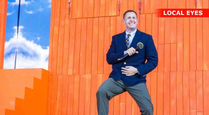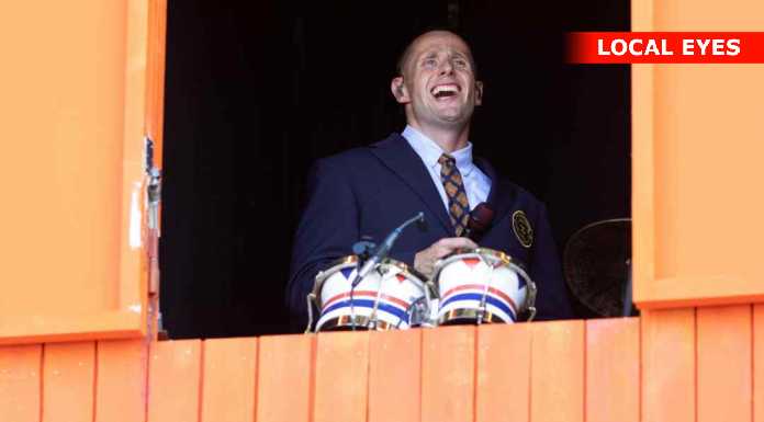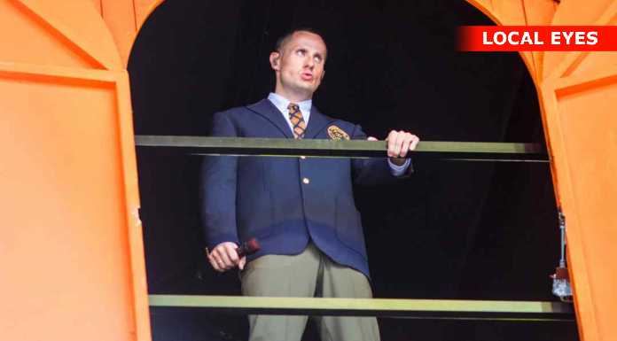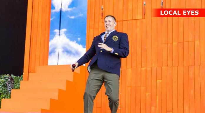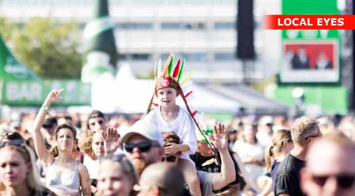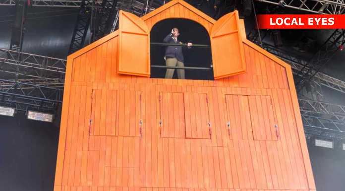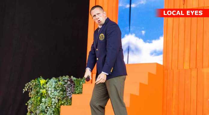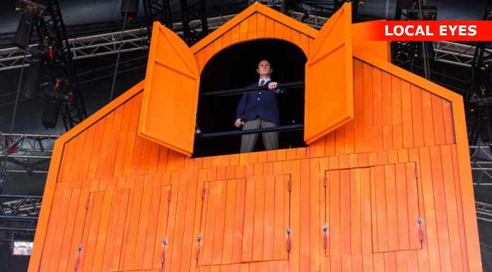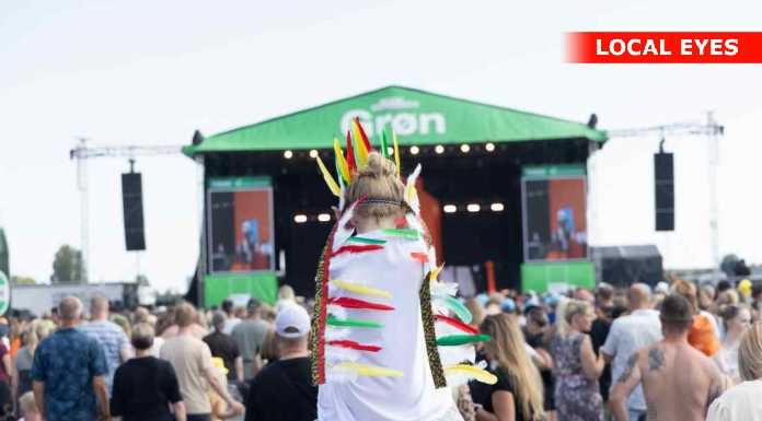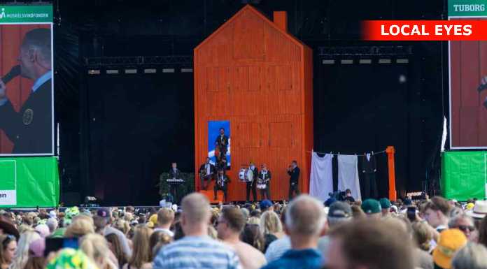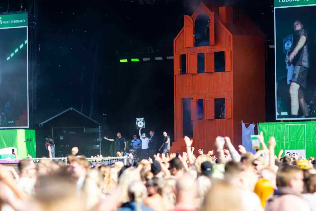 TÅRNBY: Benjamin Hav fyrede den maks af på Grøn scenen med en vild scenografi, med flere låger i et hus på scenen hvor han kom frem i forskellige låger. Familien kom også da de 3 første nr var overstået.