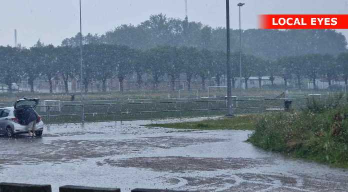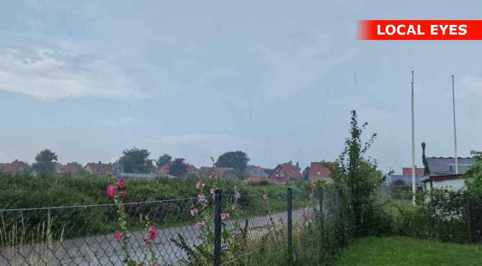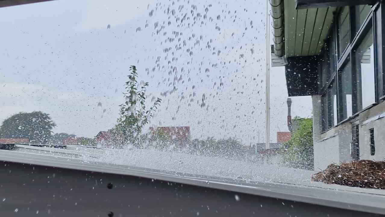 Videoen i artiklen her er fra Korsør midt på eftermiddagen, hvor en kraftig regnbye nærmest gik i stå over byen og gav derfor en del nedbør, som det tydeligt kan ses på videoen.