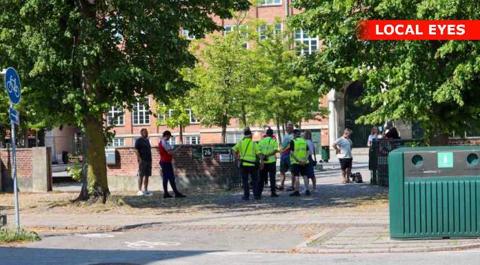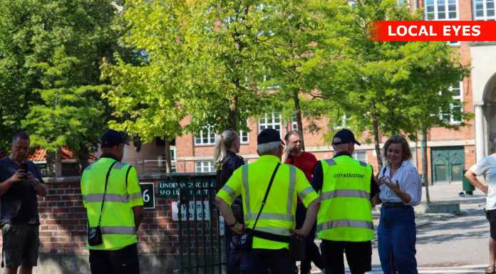 Frederiksberg Kommunes borgmester, enkelte demonstranter, kommunale assistenter (Cityassistenter) og politiet var til stede på folkeskolens område kl. 16:00.