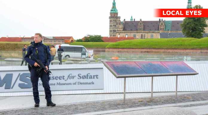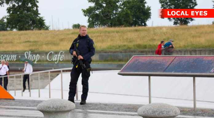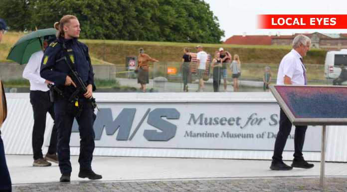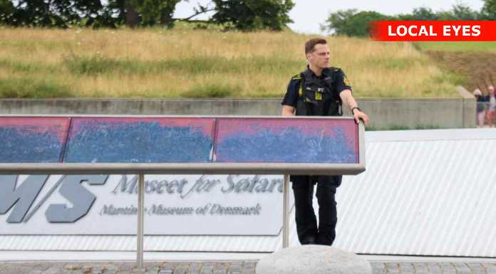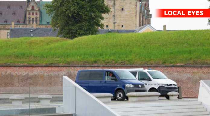 HELSINGØR: En del betjente er mandag formiddag og eftermiddag til stede omkring M/S Museet For Søfart.
