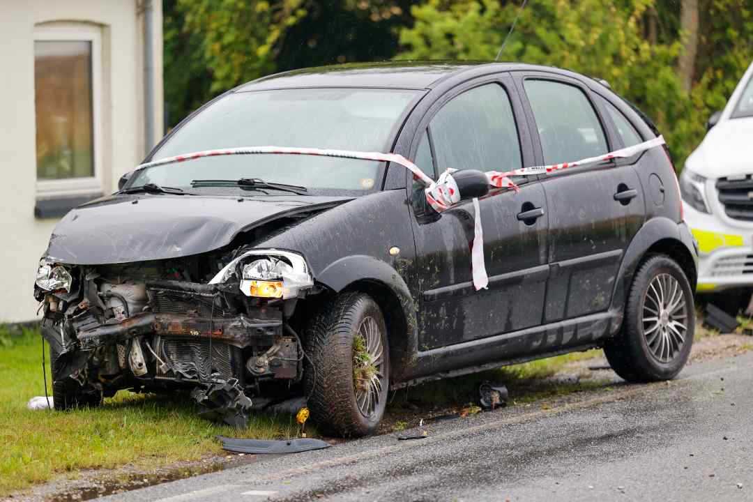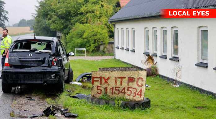 Et trafikuheld har mandag ramt Nykøbingvej nær Hørve, hvor en personbil endte med at kollidere med en bygning.