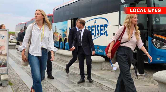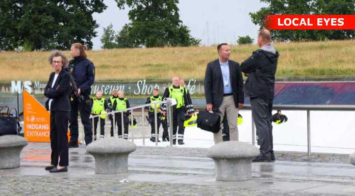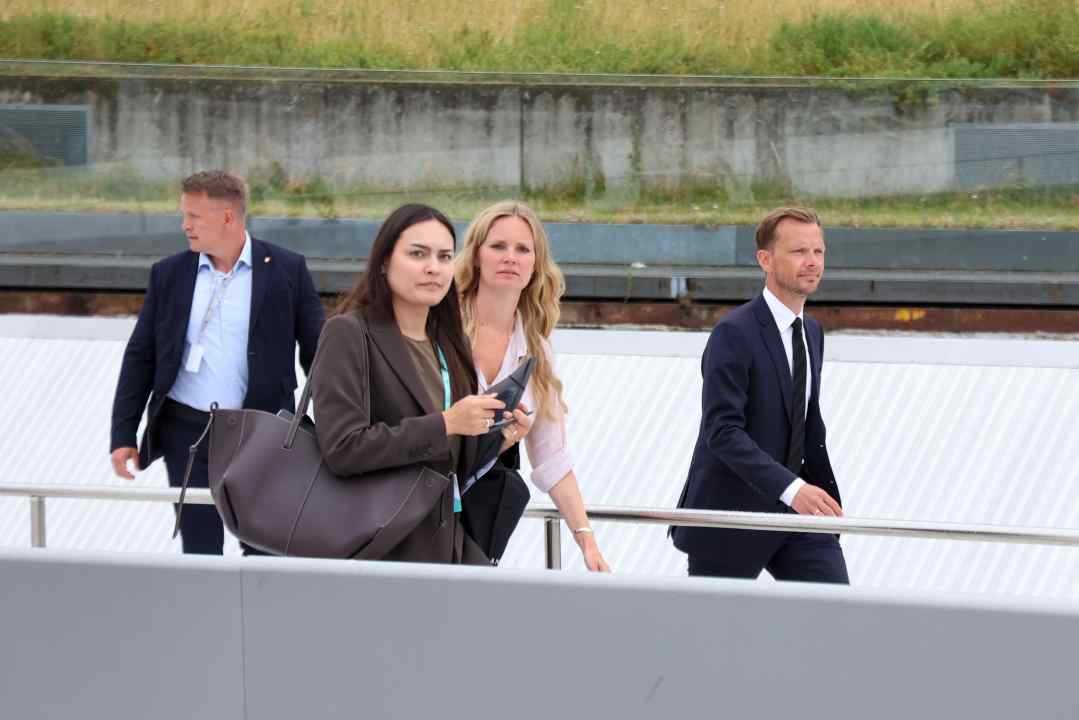 HELSINGØR: Justitsminister Peter Hummelgaard, og øvrige deltagere til Topmødet på M/S Museet For Søfart forlader stedet, efter en længere conference der startede omkring kl. 14:45