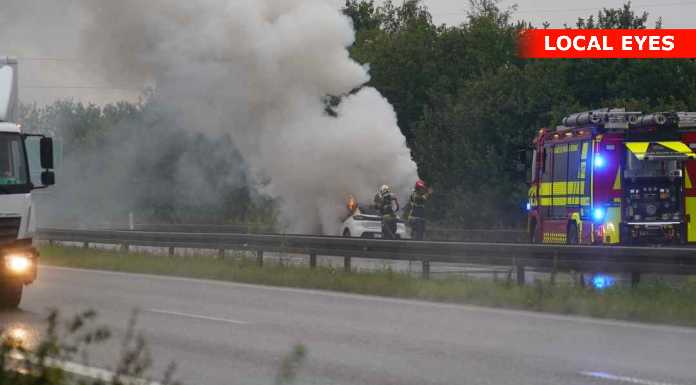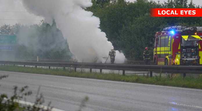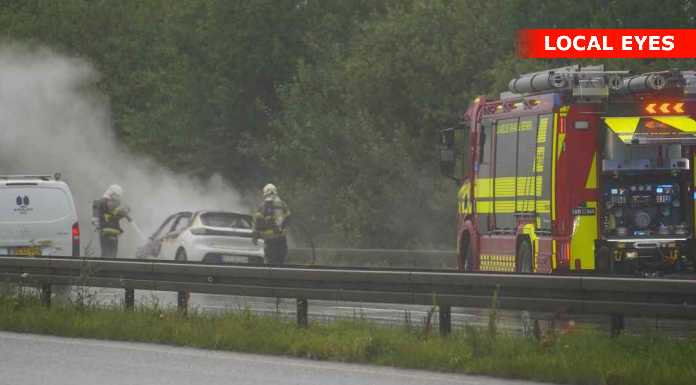 Sorø: En brændende bil på Vestmotorvejen i vestgående retning imellem. Sorø og Slagelse spærre et spor. Slagelse brand og redning station Sorø er på stedet og får styr på ilden. Ingen personer er kommet noget til ved branden.