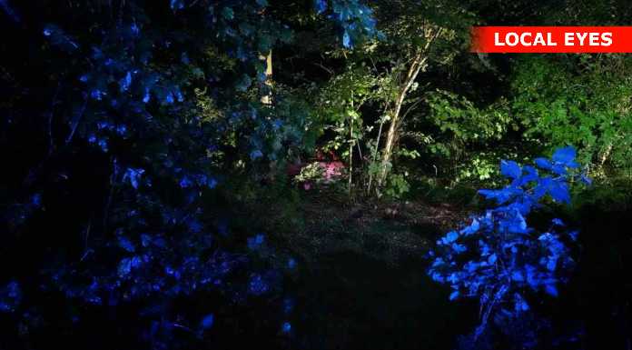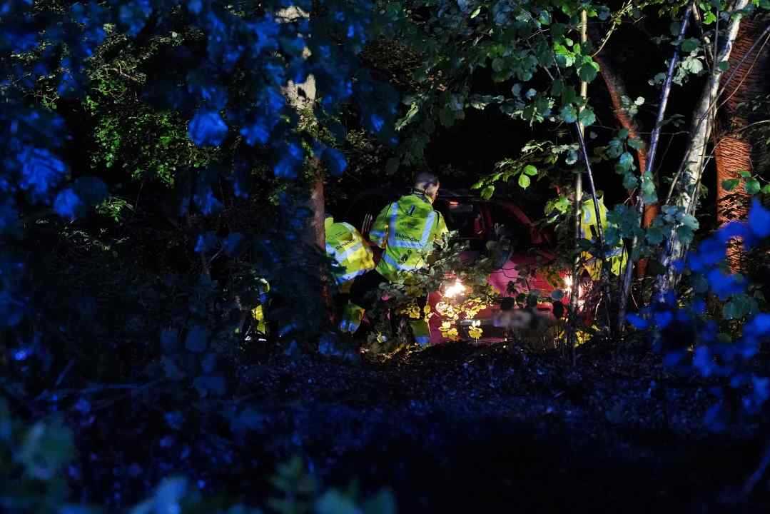 Herefter rullede bilen rundt og ned af den stejle skrænt og endte langt nede i skoven, da den ramte et træ.