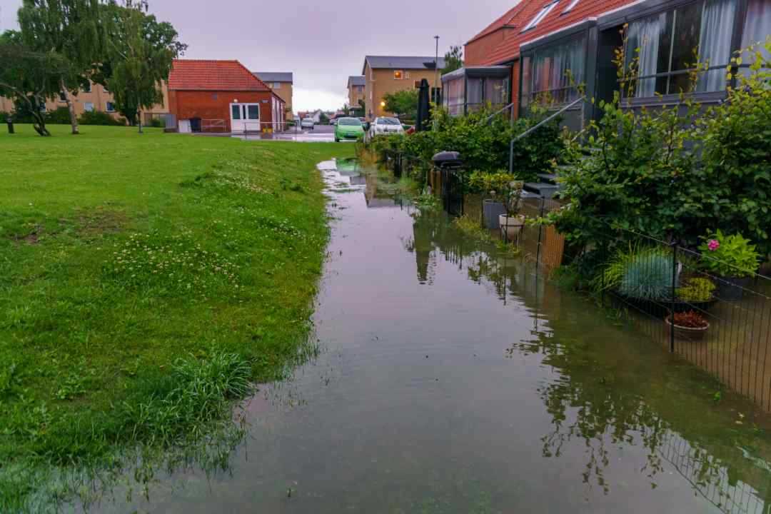 I boligområdet Alleerne i det sydlige Korsør stod flere af de grønne områder under vand, som det ses på billederne i artiklen her, ligesom flere af blokkene har fået vand i kælderen.