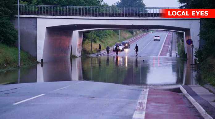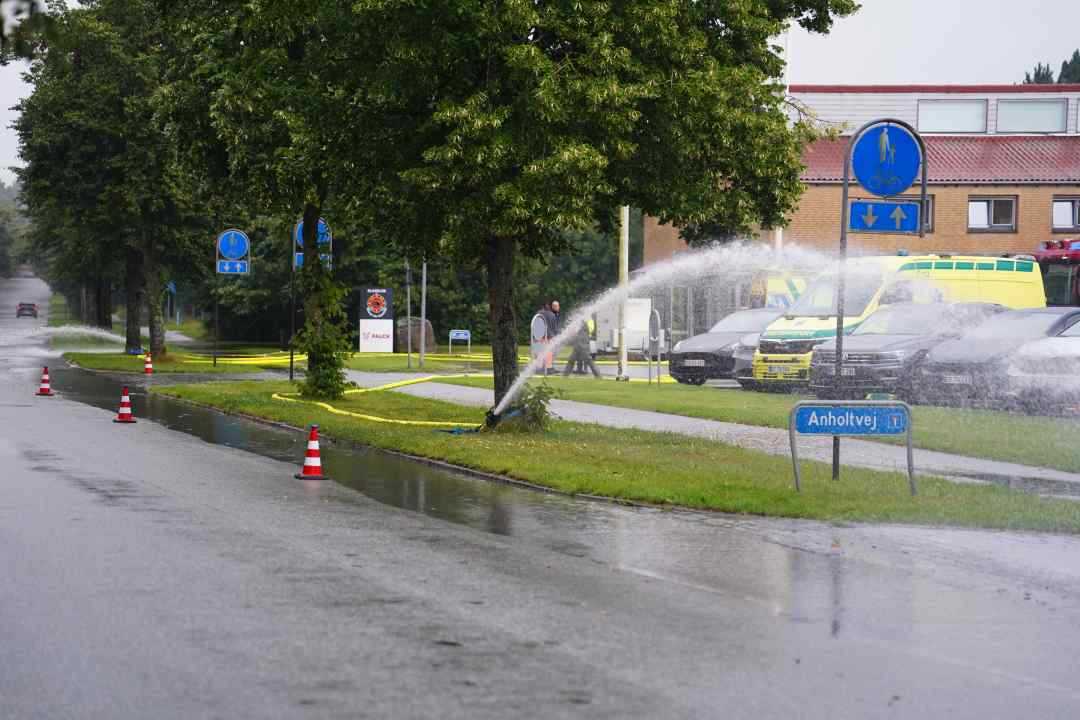 Slagelse : Slagelse slap ikke for den voldsomme regn som stod ned over det meste af Sjælland. Politistationen fik vand i kælder og det skulle pumpes væk. Brandstationen slap heller ikke, her var vandet også kommer i kælder hvor det væltede op fra et toilet. Strømmen gik på stationen grundet det meget vand og det stod rimelig højt i kælder hvor der var omklædning samt bad og div vaskemaskine og tørre tumblere. Selv togene var hårdt ramt af vandmasserne, der kørte ingen toge imellem Slagelse og Ringsted på grund af vandet stod op over skinnerne på strækningen. Der blev derfor indsat togbusser. Mange veje der lå lavet var oversvømmet af vand Søndre Ringgade stod under vand ved vejen under Vestmotorvejen . Bjergbygade stod vandet også høje under viadukt. En del bilister tog chancen og kørte igennem vandmasserne. Ud på aftenen gik det ud over Vestmotorvejen ved Tjæreby, der var så meget vand på kørebanen at man valgte at spærre motorvejen så man skulle køre fra ved Tjæreby og på igen ved Vemmelev. En bilist var så uheldig at gå i stå i vandmasserne men kom dog fri da vejhjælp kom forbi. En Slamsuger var tilkaldt for at få fjernet vandet.