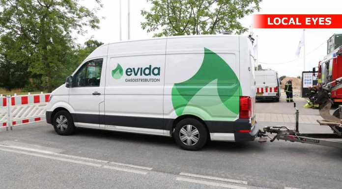 Her var der sket et brud på en gasledning, gasforsyningsselvskabet Evida ankom til stedet og fik sat en klemme på bruddet.